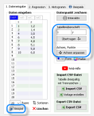 Unter dem vierten Reiter "Beispiele" stehen zu den Themen Regression und Histogramm zahlreiche Beispiele, Hilfen und Hinweise zur Verfügung.